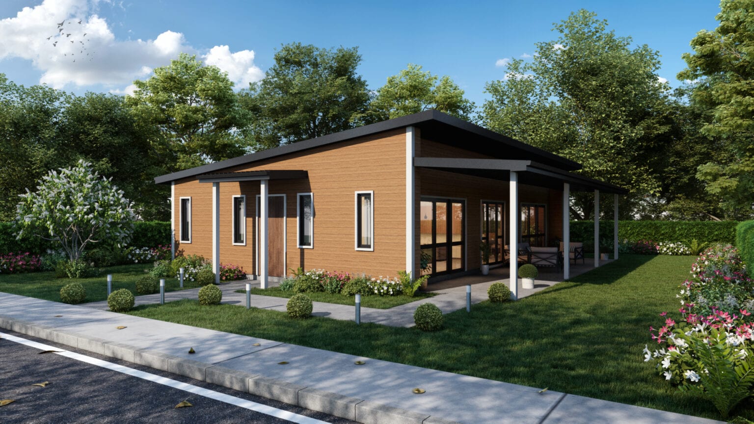 Built using only quality materials from leading NZ suppliers, it's also designed with simplicity and cost-efficiency in mind. This home consists of two bedrooms and an open plan kitchen, living and dining area.