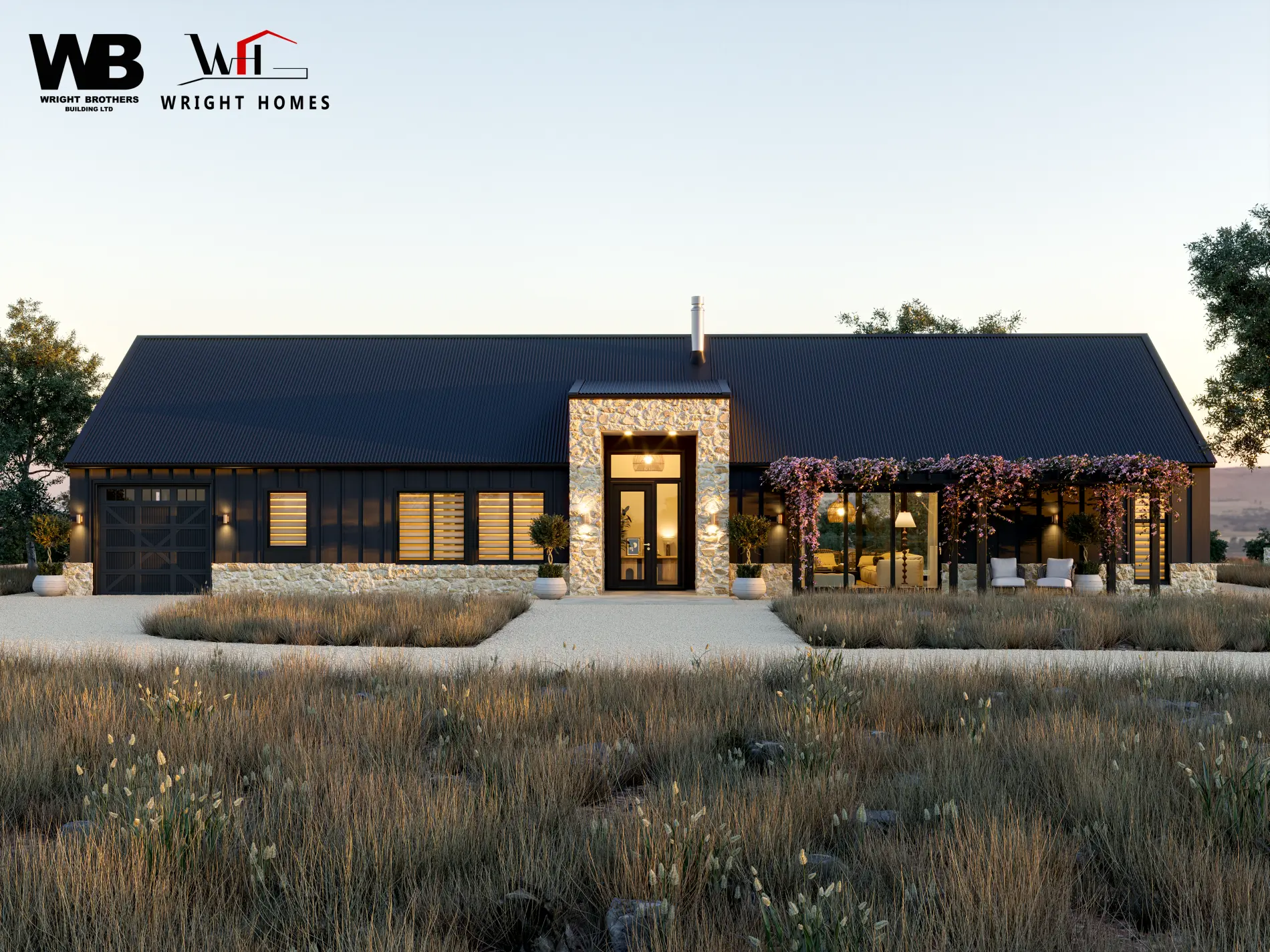 This barn-style home offers timeless charm with board-and-batten cladding and a stone-accented base for added character. The single-gable roofline frames a welcoming stone-detailed entry. Inside, the living, kitchen, and dining areas align with the sun’s path, opening to covered outdoor living for year-round enjoyment. A separate laundry adds practicality, and the garage is designed for easy expansion into a double or triple. Crafted for comfort, flexibility, and effortless living.